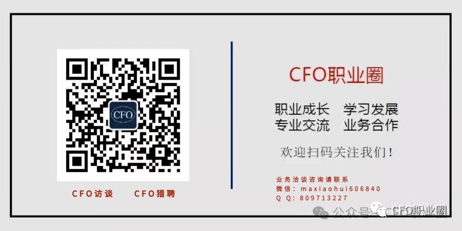 ]article_adlist-->★关注并星标“CFO职业圈”,不错过每一篇新推送! ]article_adlist-->操作方法:点击文首蓝字关注【CFO职业圈】,进入主页后点击右上角菜单栏,设为星标! ]article_adlist-->CFO职业圈推出了CFO社群,可以扫描码添加联系人加入社群!